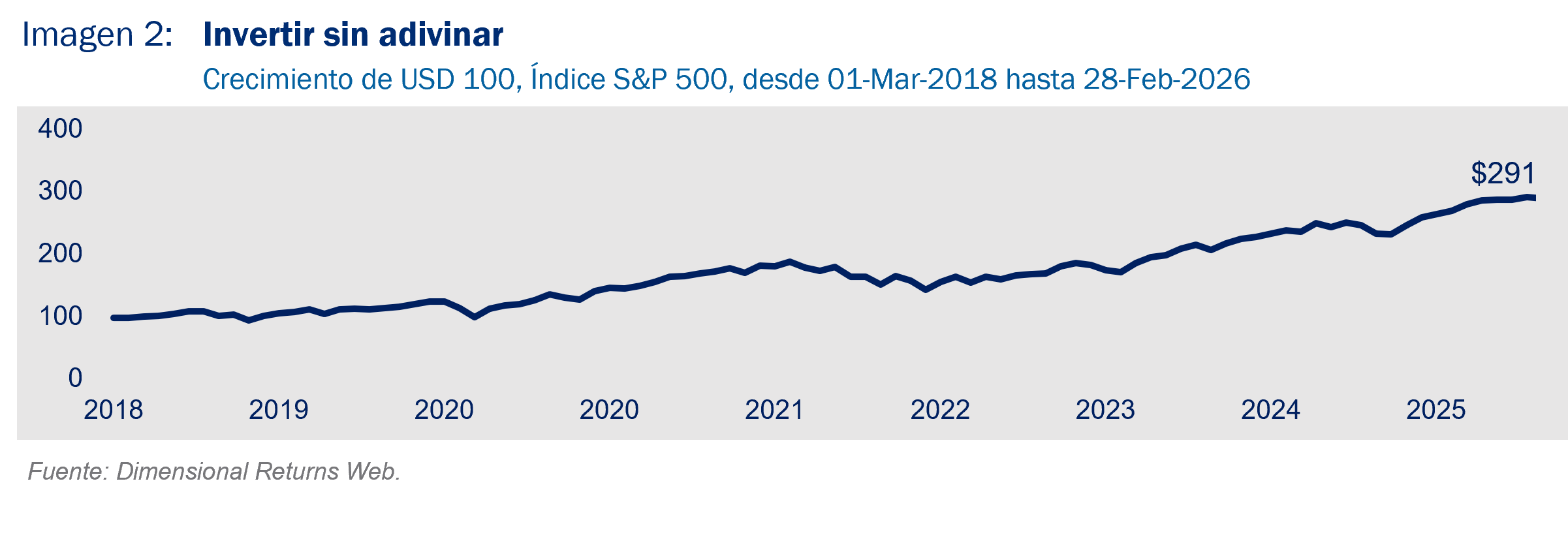 Compare eso con haber invertido esos mismos $100 en el S&P 500: sin adivinar nada, sin ganarle a nadie, ese capital se habría multiplicado casi 3 veces (imagen 2). No porque alguien perdiera, sino porque se creó valor y usted fue partícipe de ese crecimiento.
