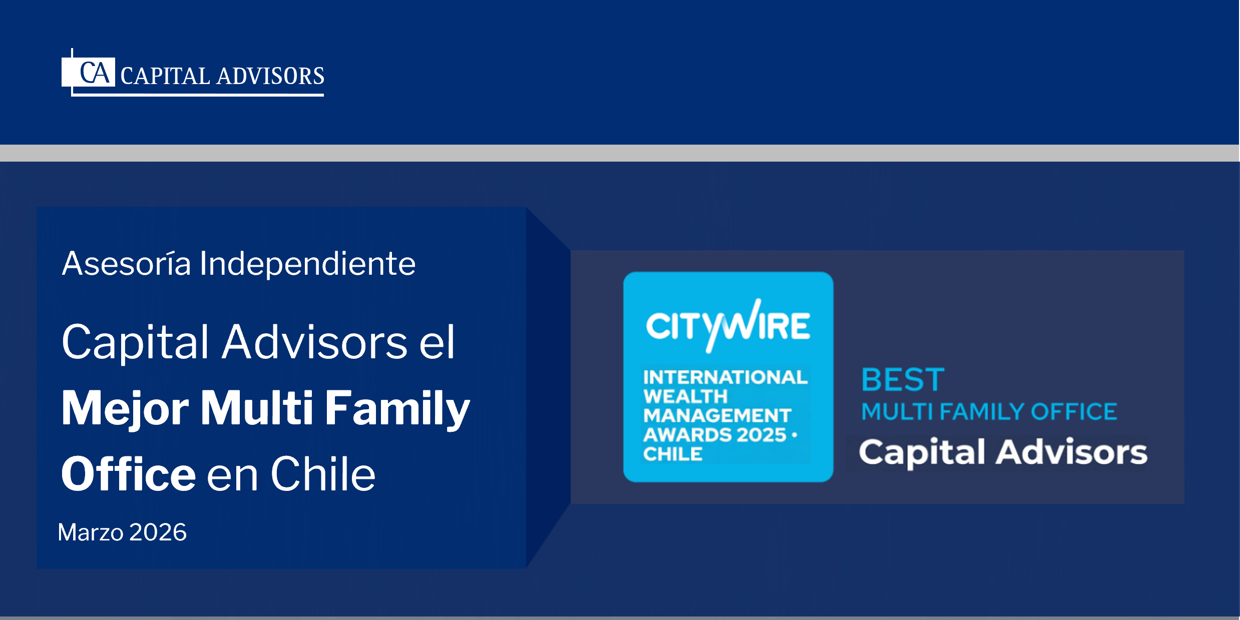 Los International Wealth Management Awards (IWMA) 2025 de Citywire, uno de los grupos editoriales independientes de información financiera más prestigiosos del mundo, reconocieron a Capital Advisors Family Office (CAFO) como el mejor Multi Family Office de Chile.